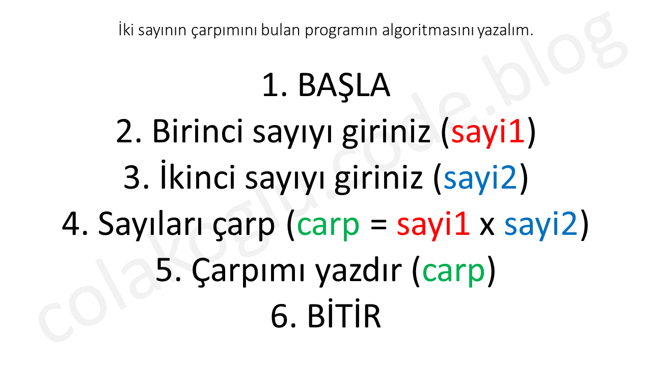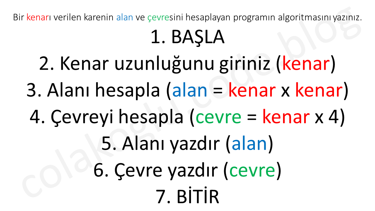 Merhaba 5. Sınıf 6. Hafta konusu olan algoritmaların örneklerini görebilirsiniz.